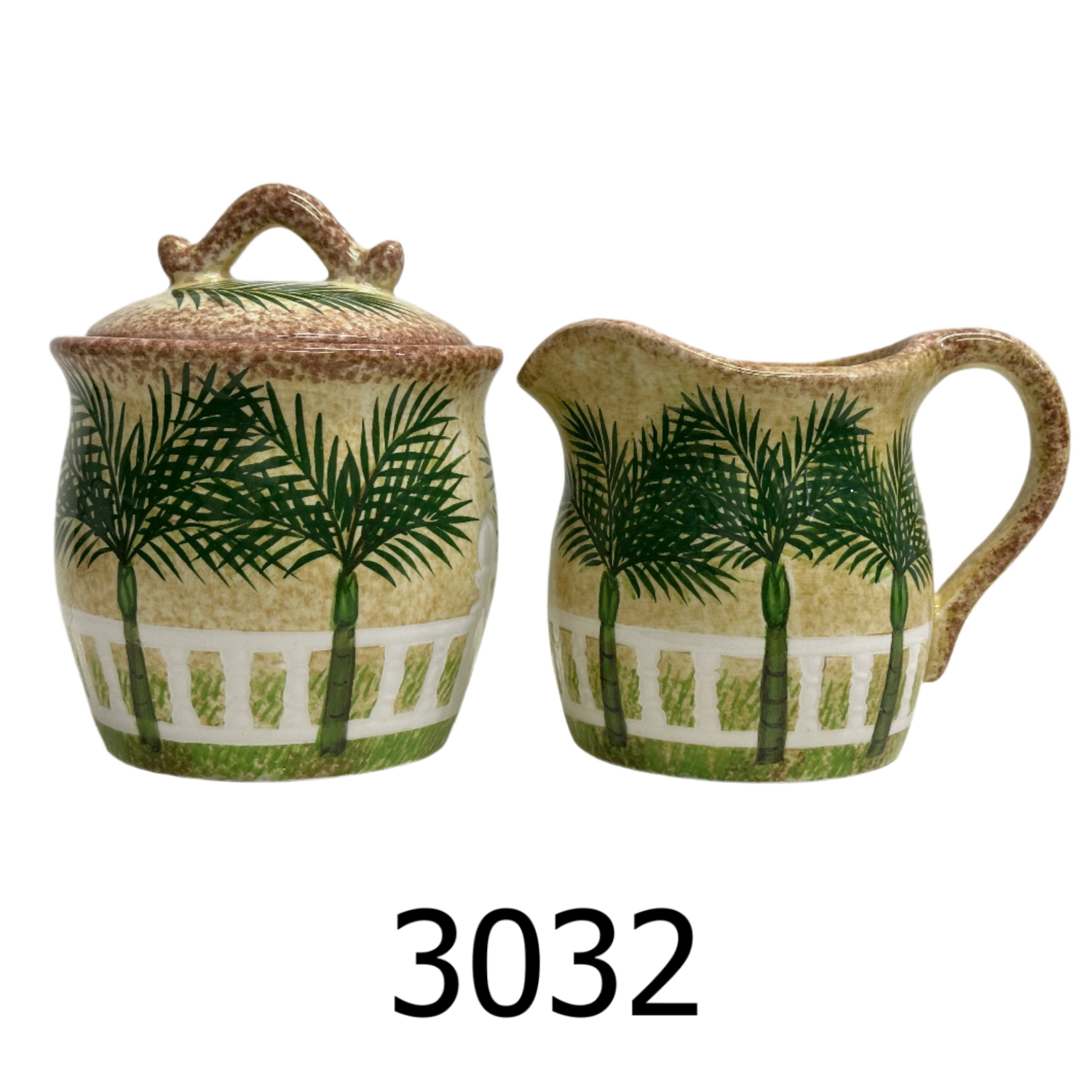 3 PC Palm Tree Sugar Bowl & Creamer Set