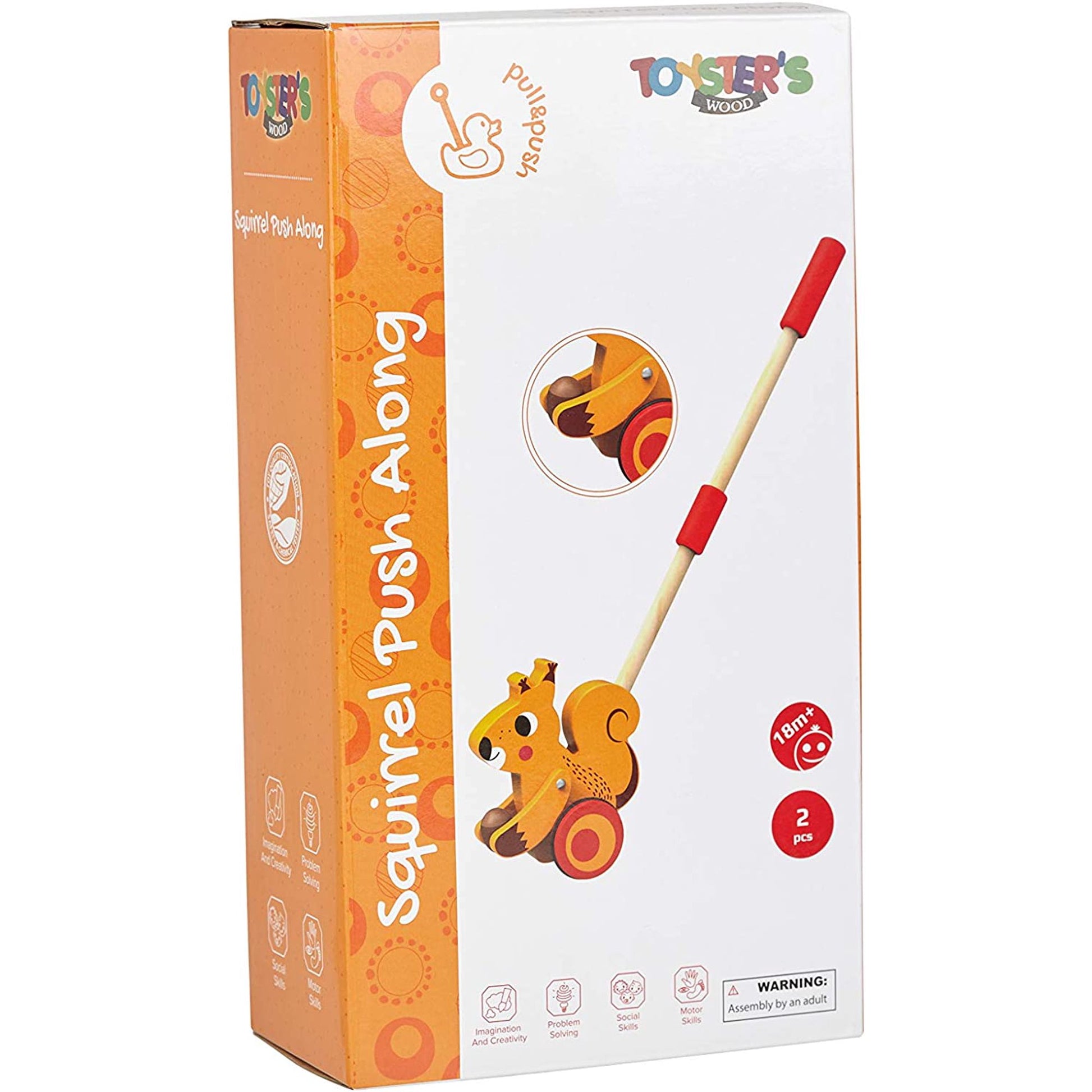 - SUPREME PUSH ALONG ANIMAL WALKER This adorable push toy features a little squirrel with an acorn in hand, of course. As your toddler pushes the walker around the squirrel takes nibbles out of the acorn.