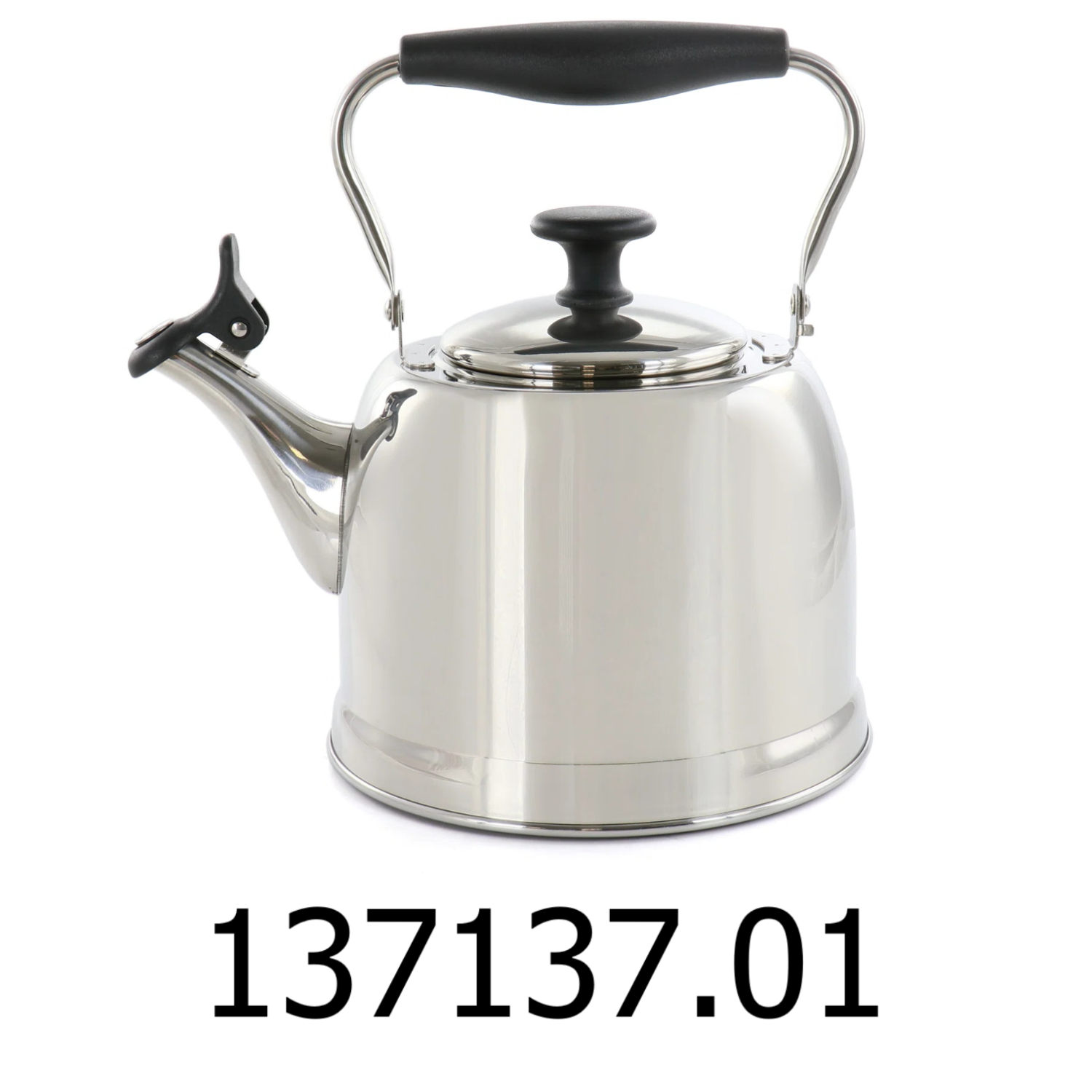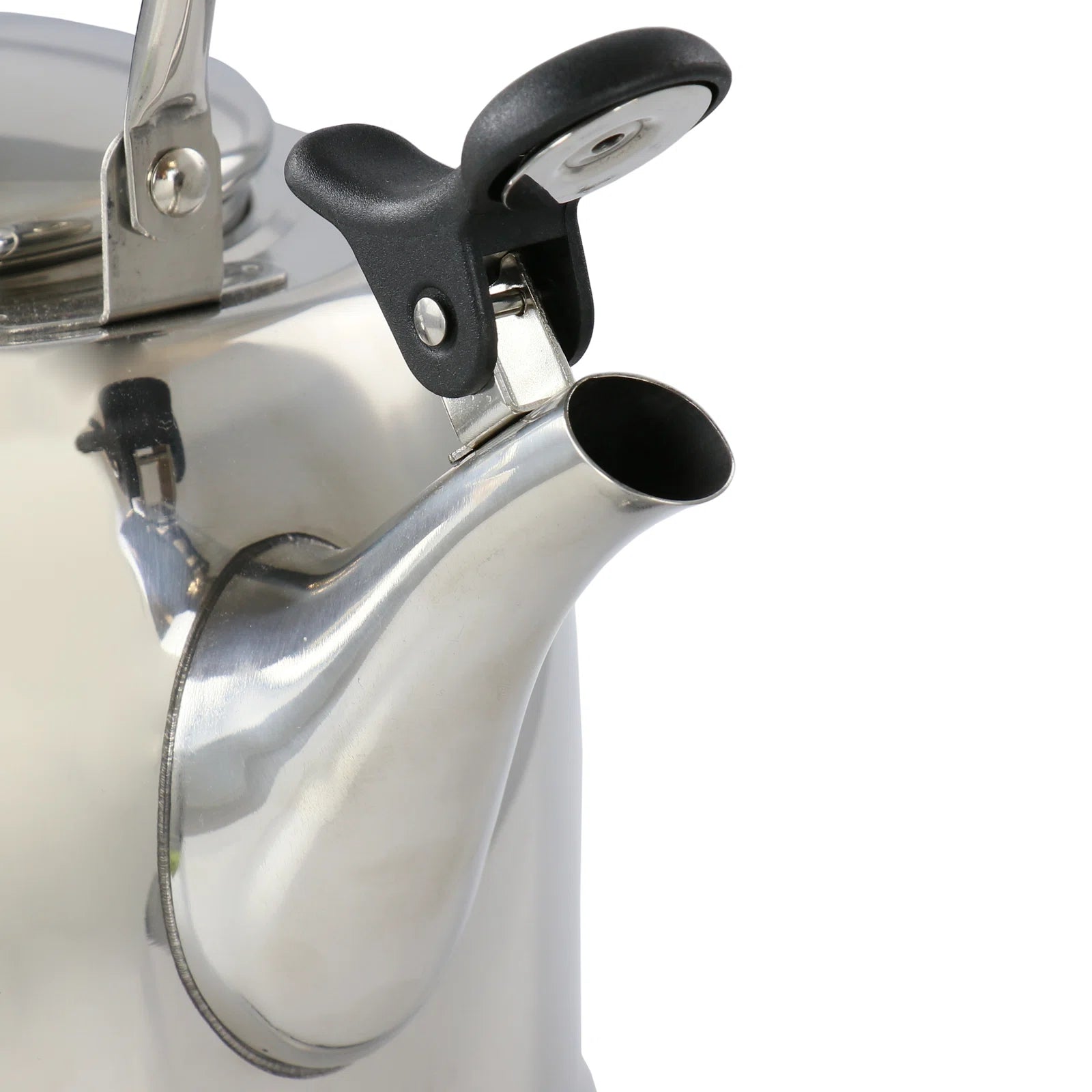 - Heat up some water to enjoy a hot beverage with this Martha Stewart Lily Pond 2.2 quart stainless steel tea kettle. Durable stainless steel construction means this kettle will last for years and serve you many warm drinks. A fold-down handle with a stay cool grip means this kettle is easy to fill and clean. Simply listen for the soft whistling noise to know when your water is boiling and rest assured the induction base is compatible with all cooktop types. Enjoy your favorite hot beverage year-round with this gorgeous kettle!
