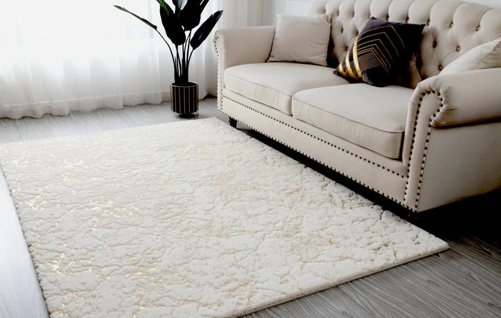 White Gold Soft Cozy Fuzzy Faux Fur Area Rug / Carpet